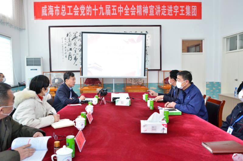 1229日,威海市總工會(huì)黨的十九屆五中全會(huì)精神宣講走進(jìn)宇王集團(tuán),宇王集團(tuán)被授予山東省農(nóng)林水系統(tǒng)軍民融合發(fā)展榜樣以及勞模和工匠人才創(chuàng)新工作室牌匾。