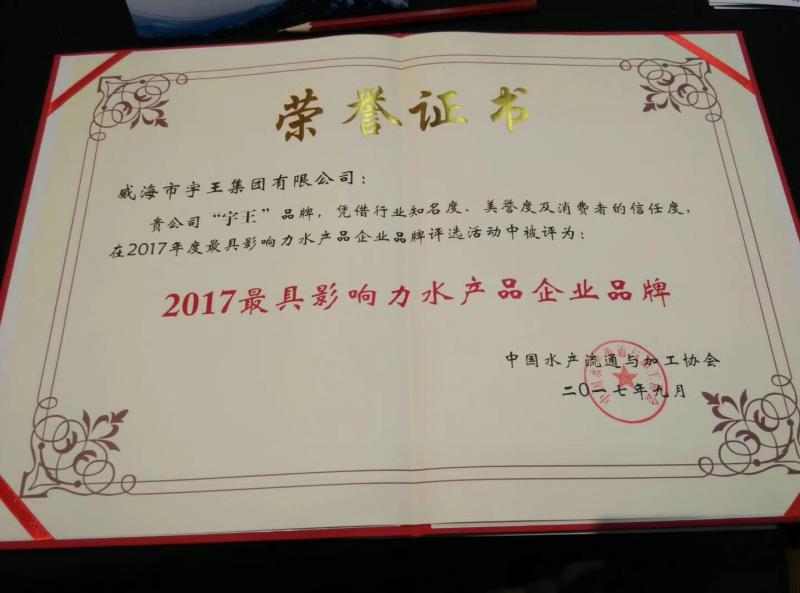 922日,“2017中國水產品品牌大會”在京召開,威海市宇王集團有限公司在本次大會上榮獲“2017最具影響力水產品企業品牌”大獎;經專家組審核,公司的魚鱗膠原蛋白系列產品榮獲“2017創新加工水產品”大獎。